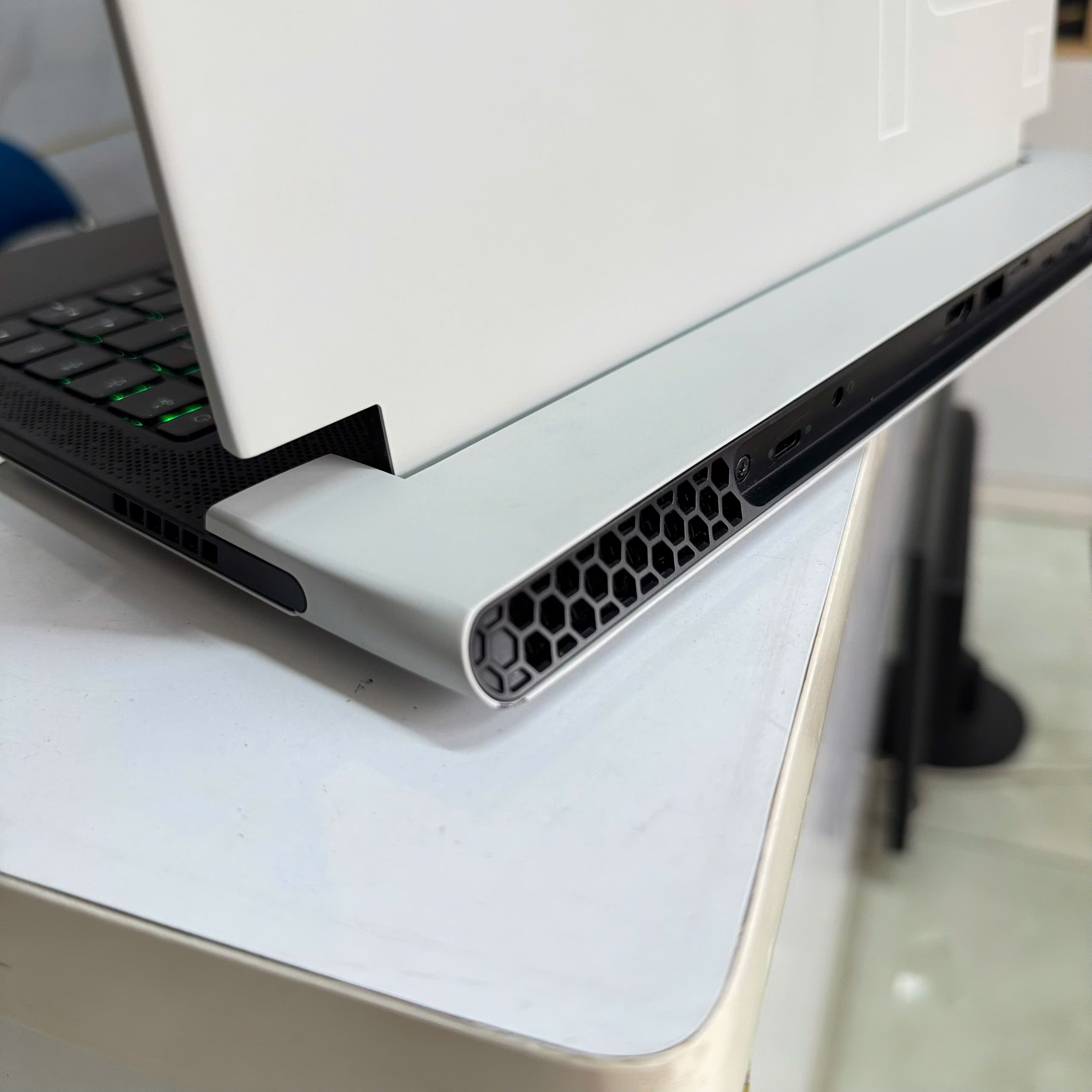 Alienware X14 tự hào là chiếc laptop gaming mỏng nhẹ nhất của Alienware tính đến hiện tại. Với độ dày chỉ khoảng 14.5mm, đây là mẫu laptop lý tưởng cho những game thủ hay di chuyển. Máy có tông màu Lunar Light đặc trưng, kết hợp với thiết kế bản lề độc đáo và hệ thống đèn LED RGB đầy tinh tế.